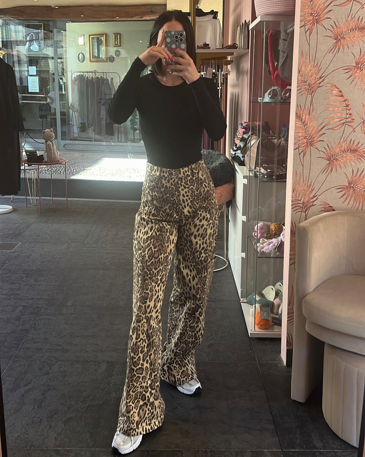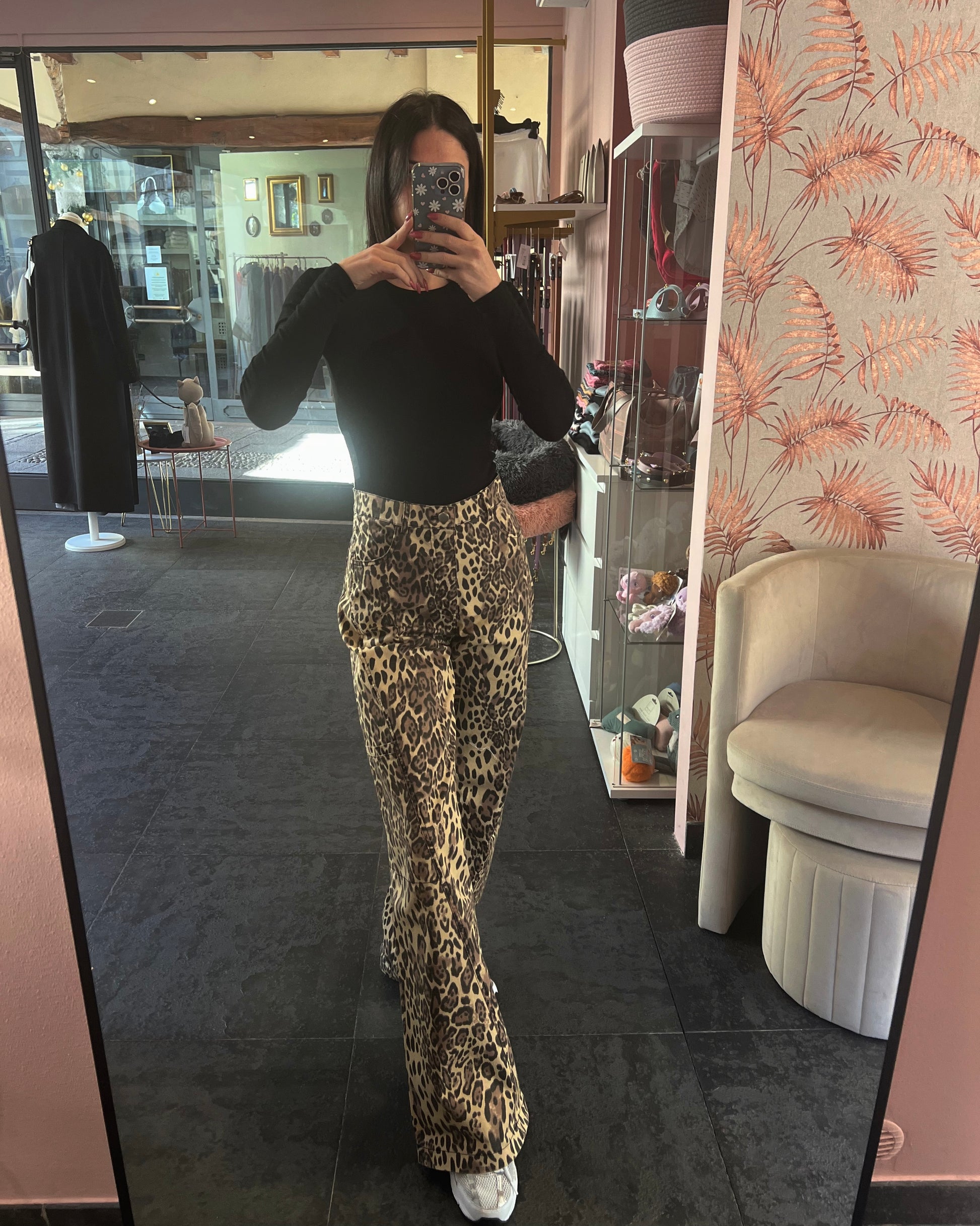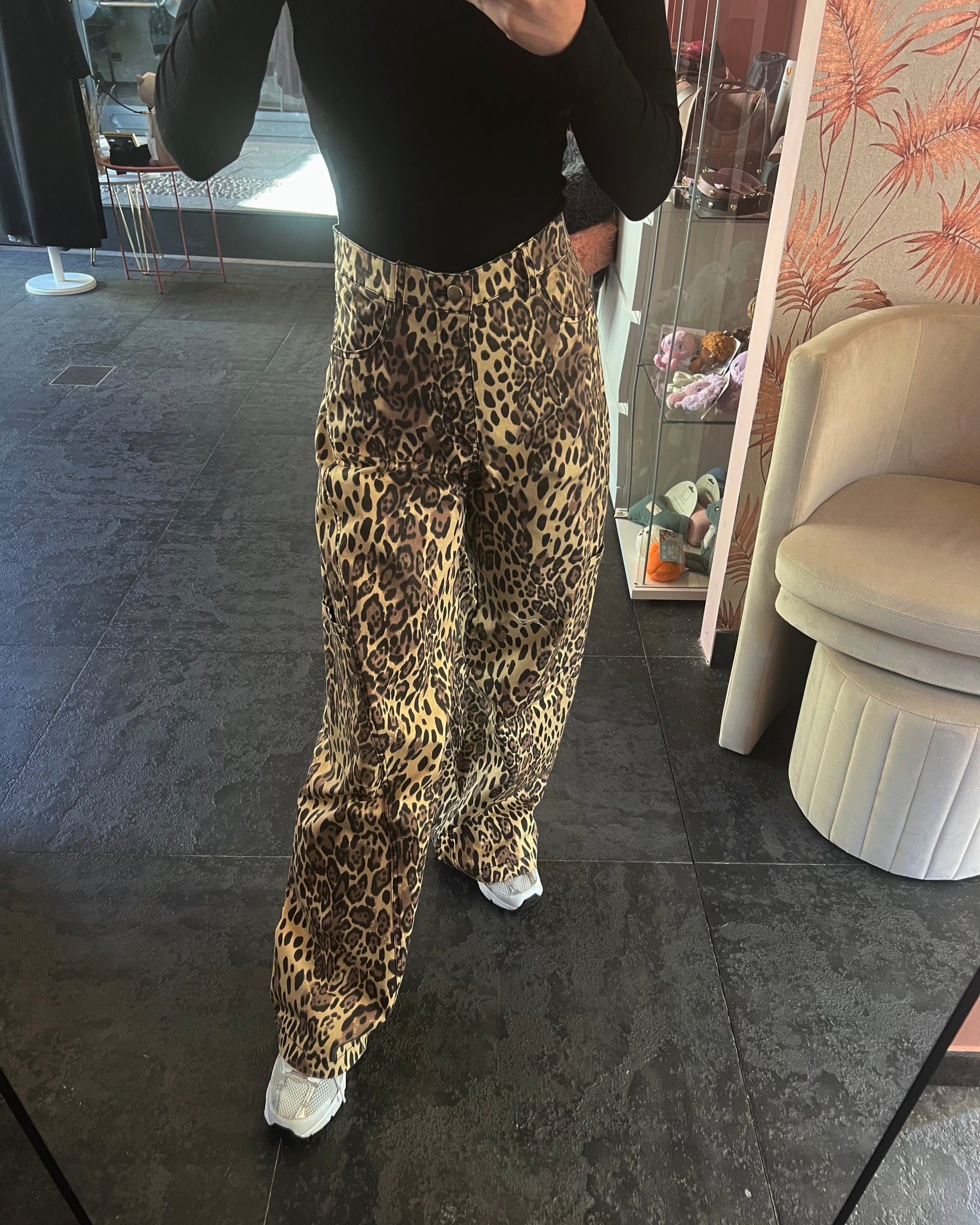 Jeans cargo maculati, tasche laterali e sulla gamba, vestibilità morbida