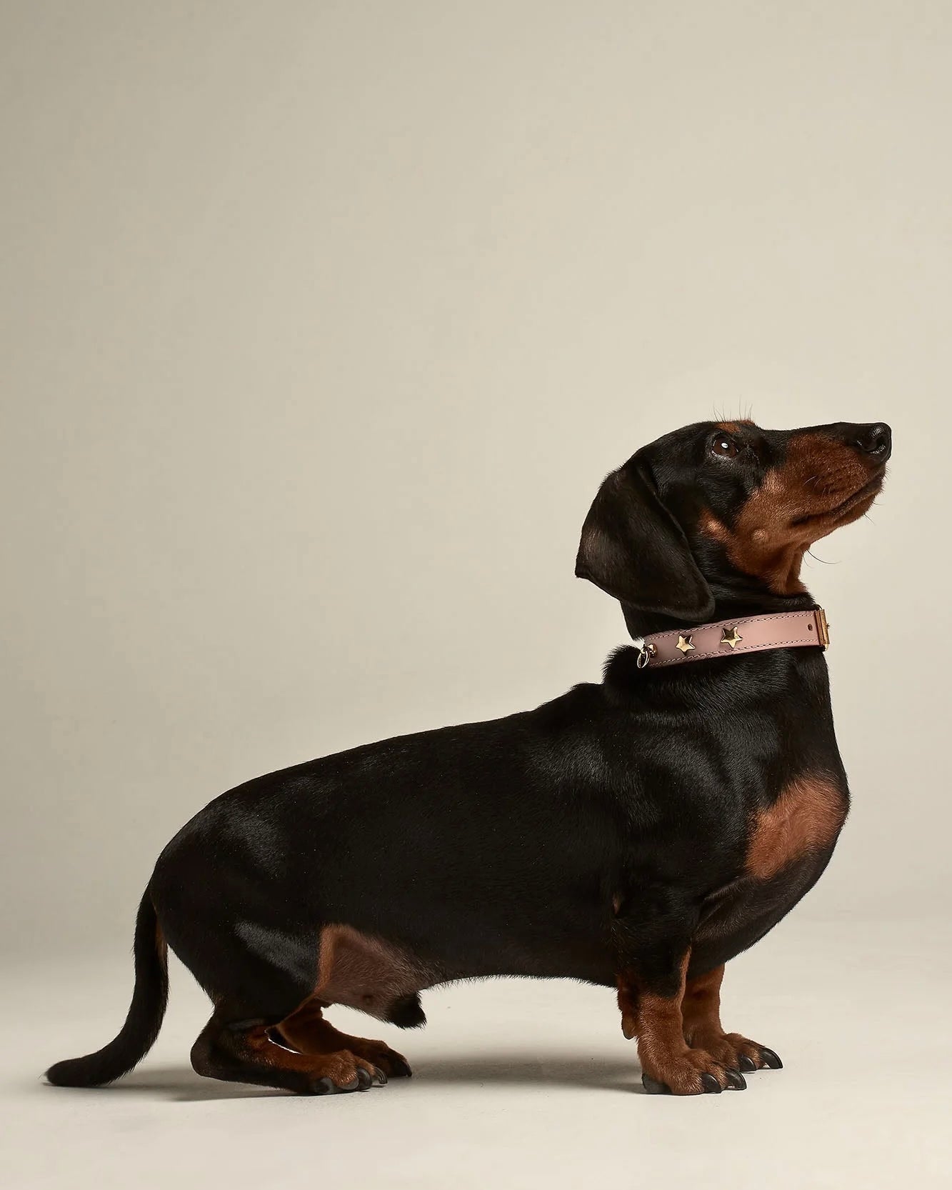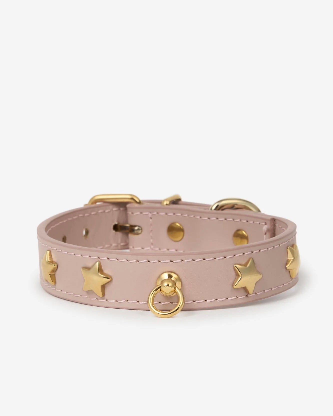 Collare in 100% pelle bovina liscia con chiusura a fibbia regolabile in ferro dorato in 5 fori, gancio per il guinzaglio e gancio portamedagliette