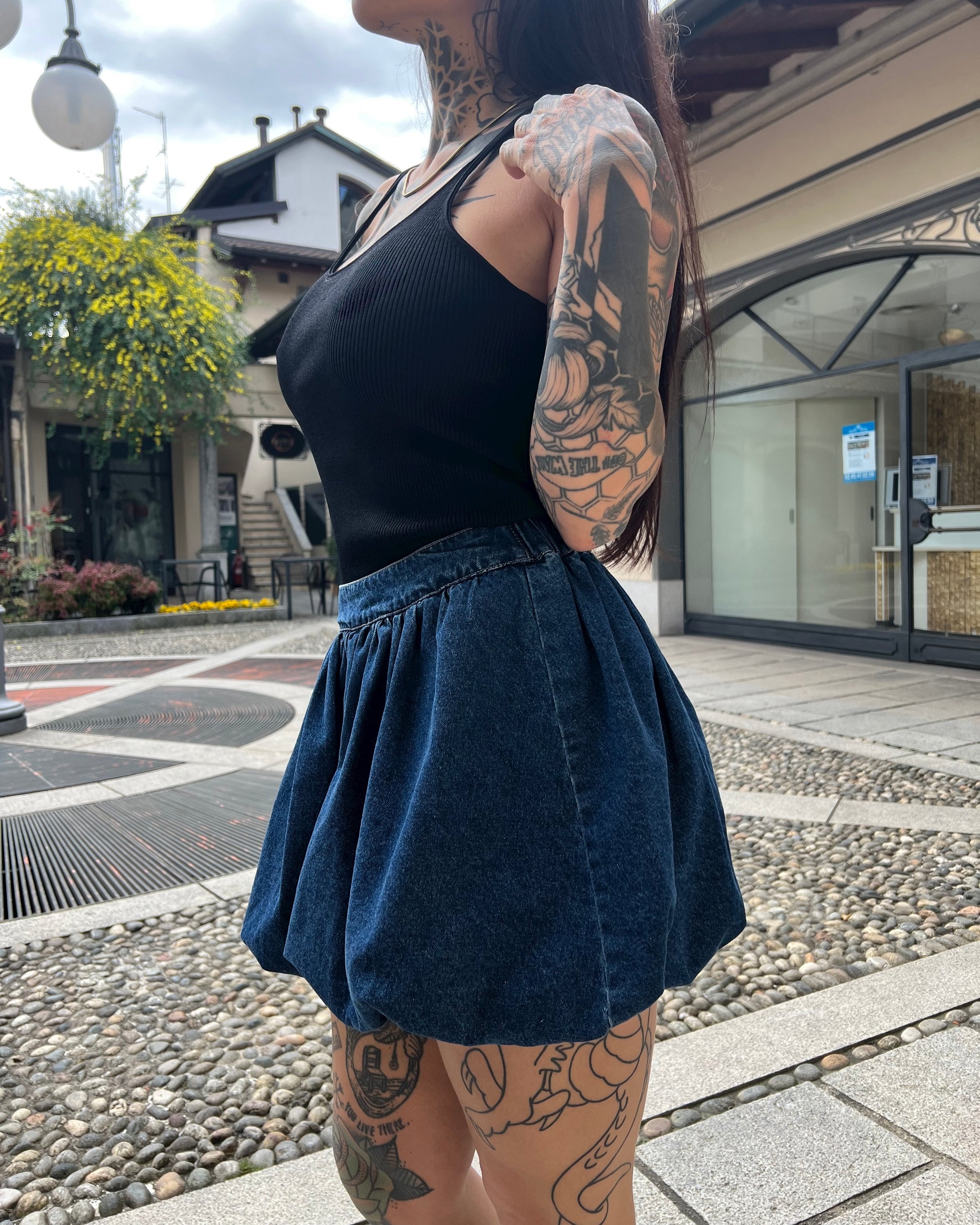 Gonna in jeans a palloncino con elastico in vita e zip laterale