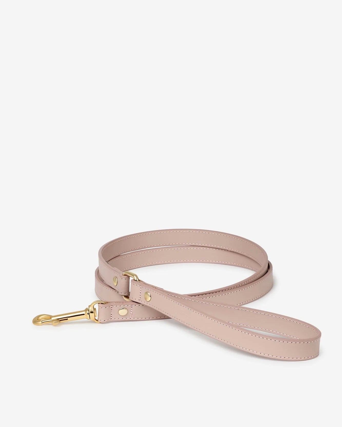 Guinzaglio in 100% pelle bovina liscia con rinforzo nelle cuciture e chiusura a moschettone in ferro dorato