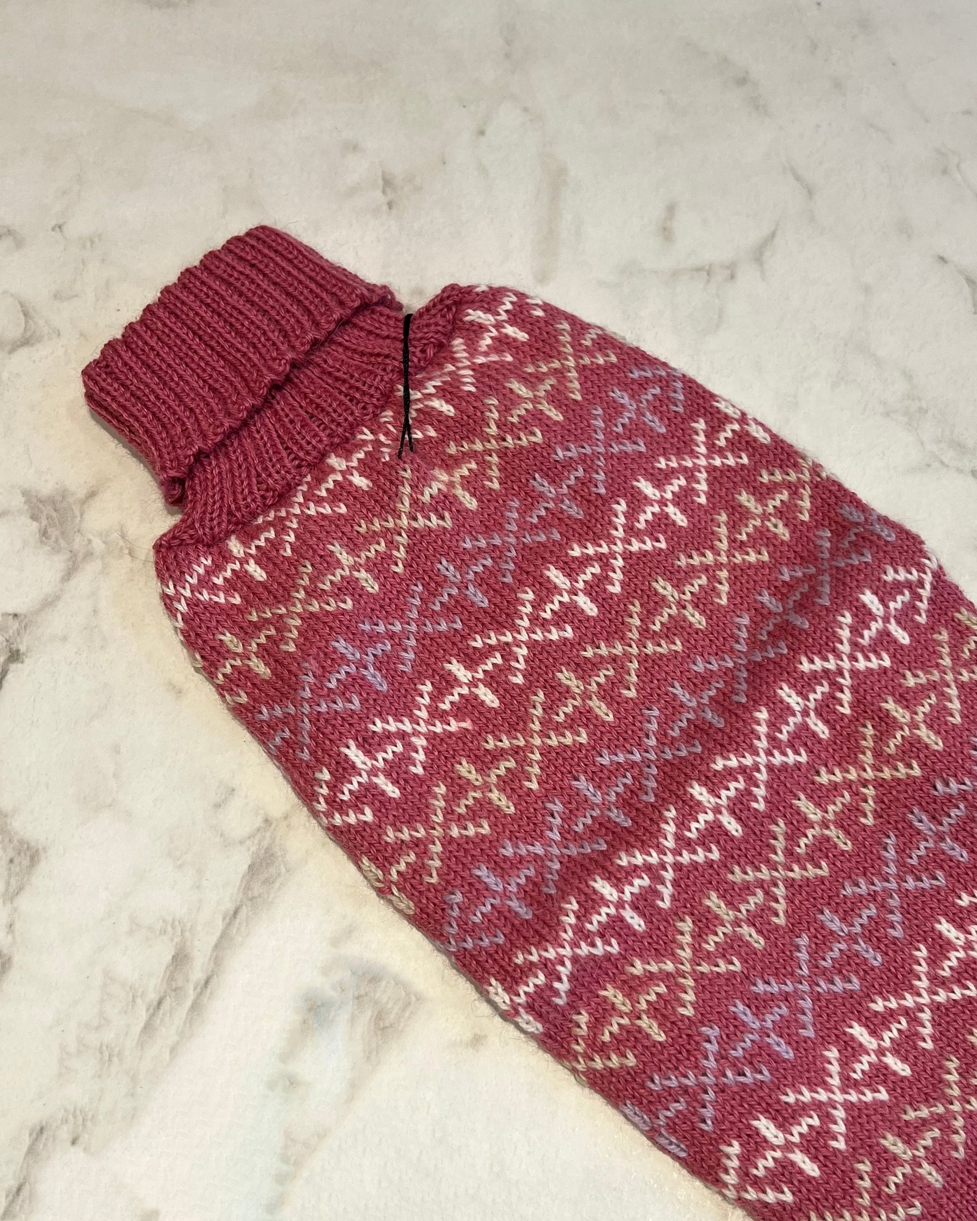 Maglione rosa per cani con lana di alpaca al 50%, buco superiore per il guinzaglio e collo alto
